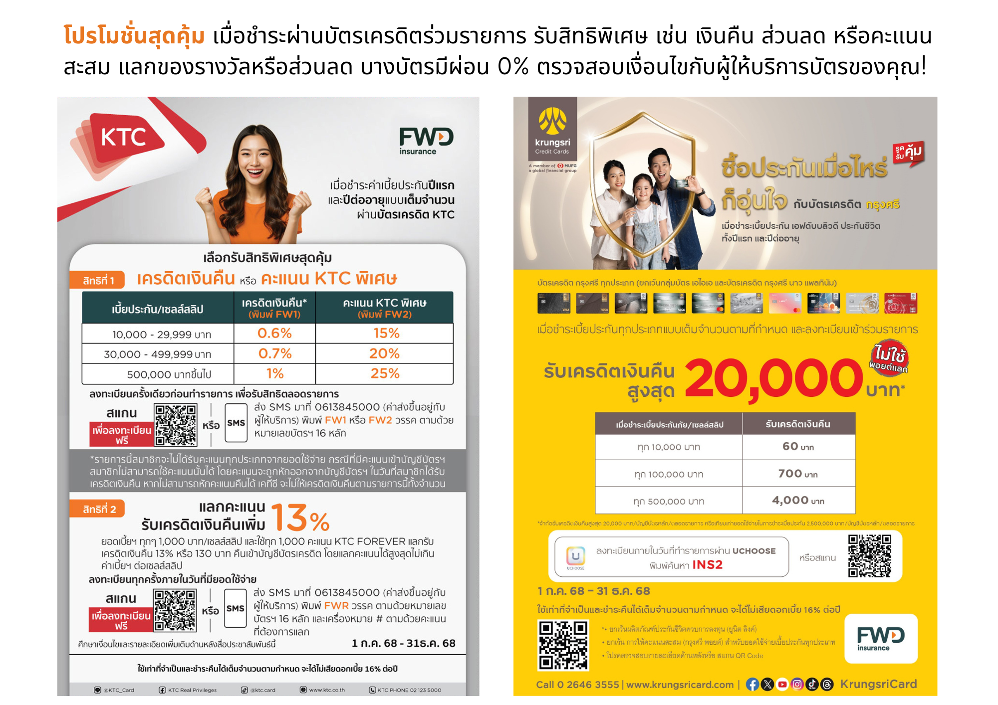 โปรโมชั่นเฉพาะลูกค้าที่ชำระผ่านบัตรเครดิตที่ร่วมรายการ เงินคืน ส่วนลด คะแนนสะสม