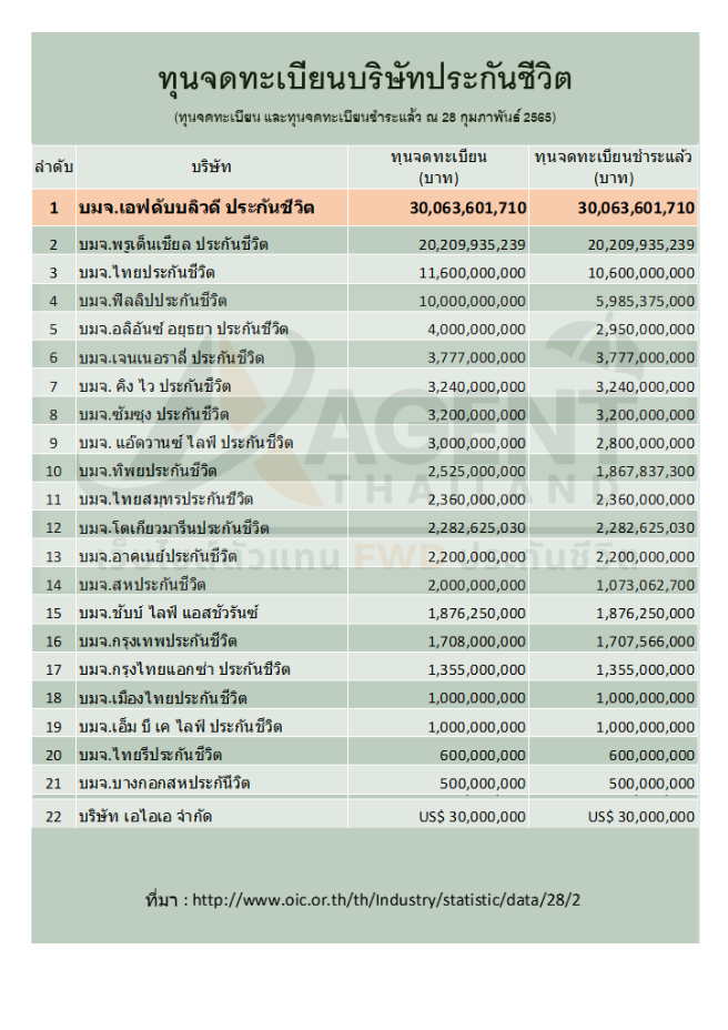 ทุนจดทะเบียนบริษัทอันดับ 1